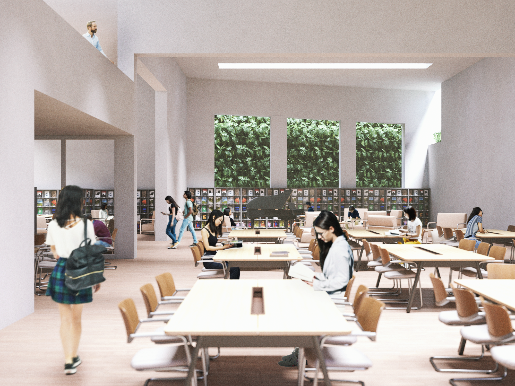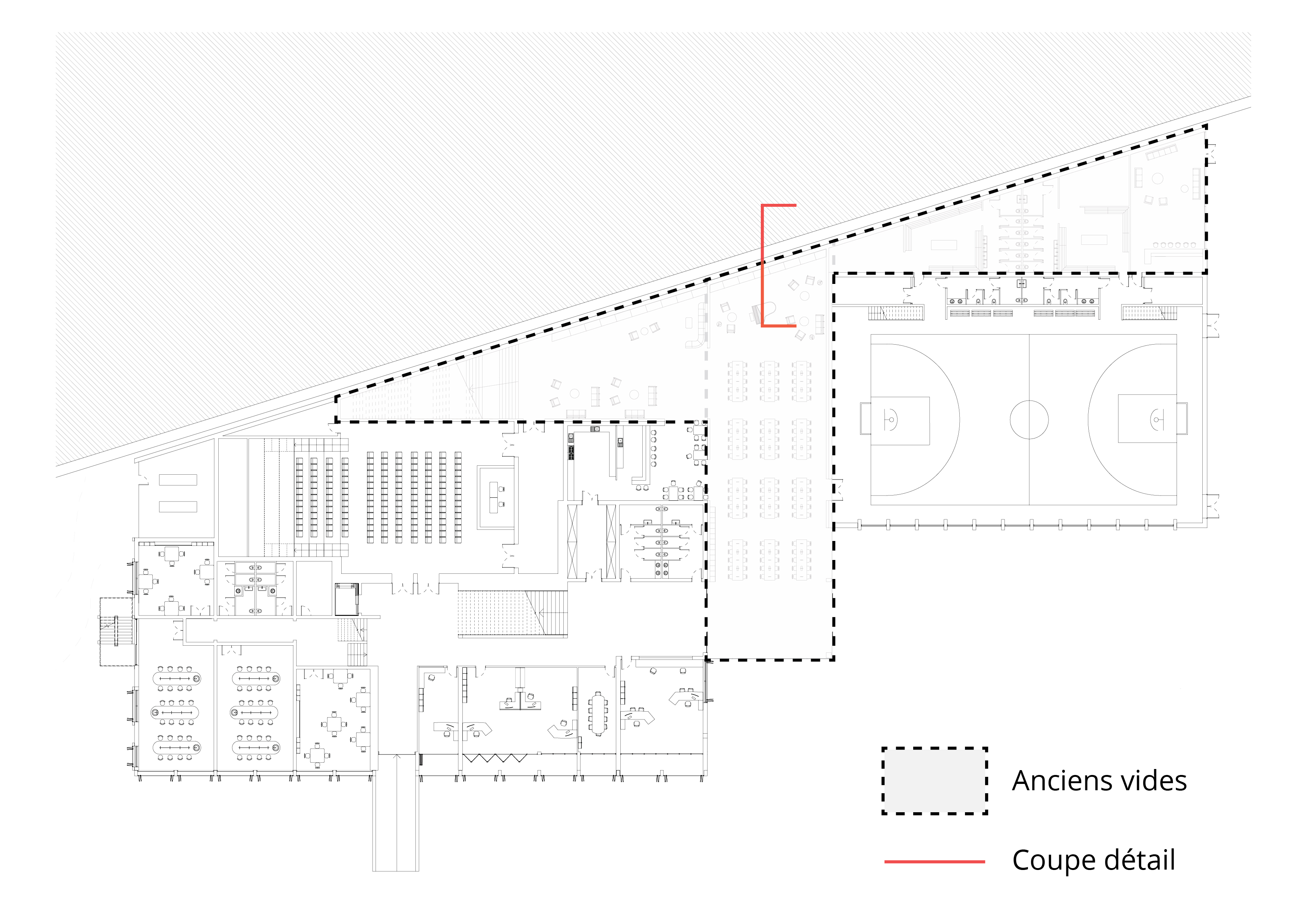 Ce travail fit l’objet d’une réflexion allant de l’échelle urbaine jusqu’au détail de la salle de classe. Le projet favorise la création de nouveaux espaces polyprogrammiques, capables d’accueillir des événements publics de manière ponctuelle, mais également de permettre au lycée une utilisation flexible de l’ensemble des espaces afin de ne pas contraindre l’évolution pédagogique.