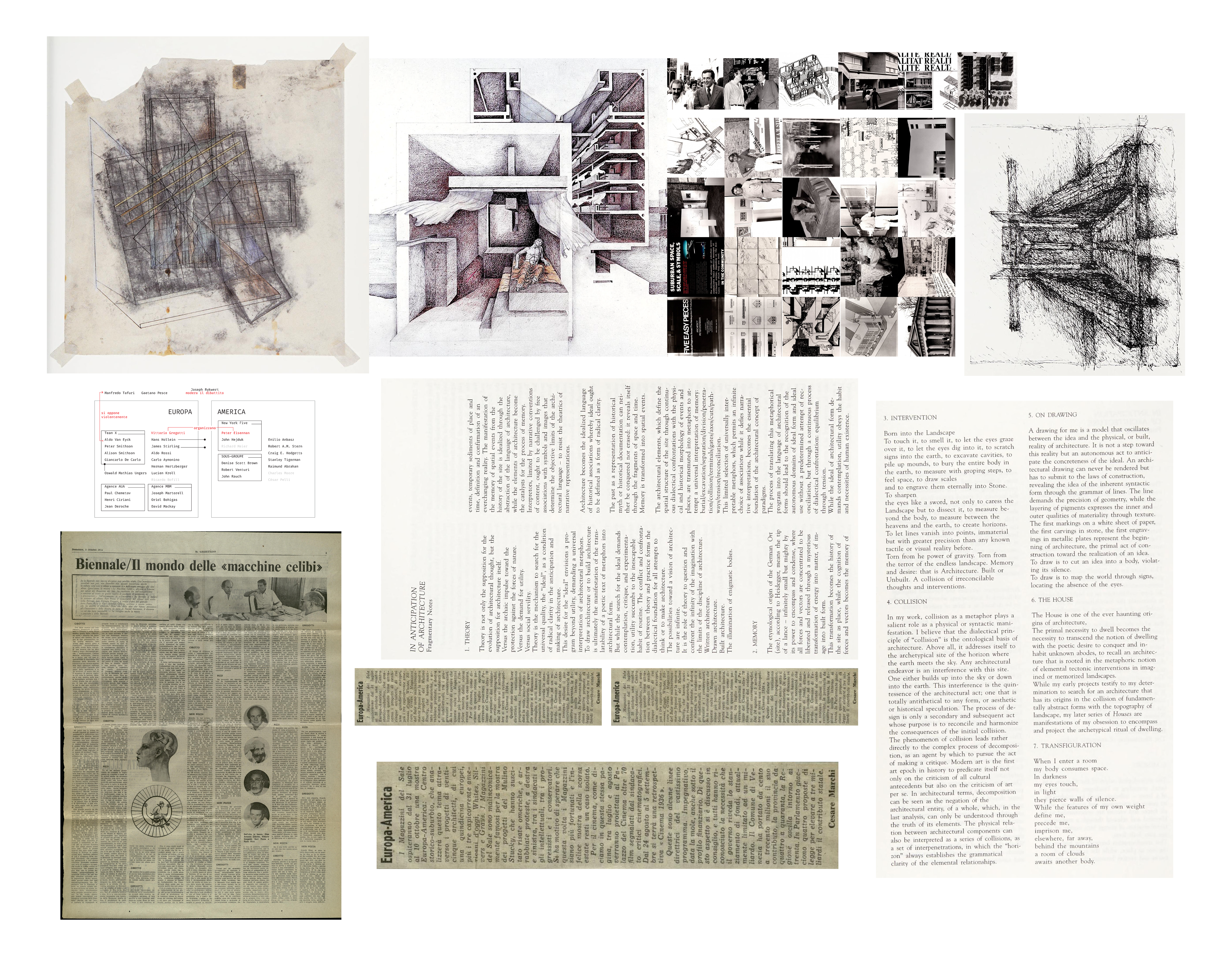 Cette exposition est contenue dans un volume de 40 x 36 x 10 cm pouvant être ouvert pour déployer textes, diapositives, vidéo et peintures. Cette boîte-en-valise retrace la mostra de 1976 aux Magazzini del Sale lors des prémices de la Biennale d’Architecture de Venise. L’accent est mis sur la rencontre entre des architectes d’Europe et d’Amérique, au travers d’un prisme post-moderne explorant plus en détail les travaux d’architectes présents comme Raimund Abraham.